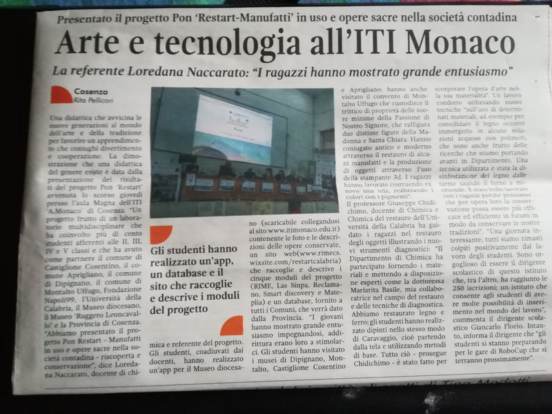 dell’I.T.I. “A. Monaco” di Cosenza nel Concorso Nazionale 'Adotta un monumento della Nostra